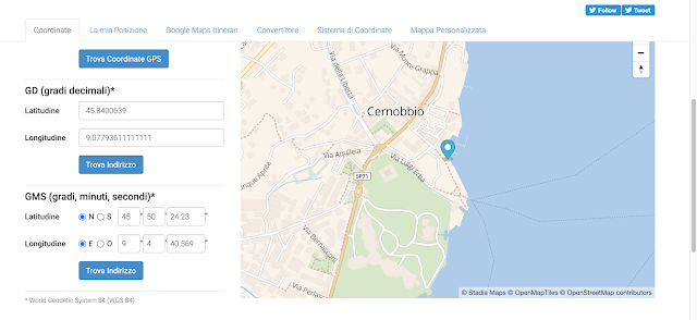 Latitudine 45,50,24,23 N e Longitudine 9,4,40,57 E